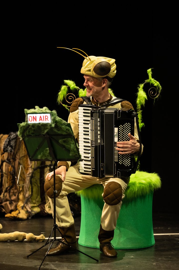 Ralf Gscheidle schrieb die heitere und einfühlsame Musik für diese kleine Insektenoper, die seit 2022 auf die Reise in Kitas, Kindergärten sowie auch in Einrichtungen für Senior*innen geht. Ute Lindenbeck entwarf die fantastisch anmutenden Kostüme für die Inszenierung von Brigitta Gillessen, die auch das Libretto verfasste.