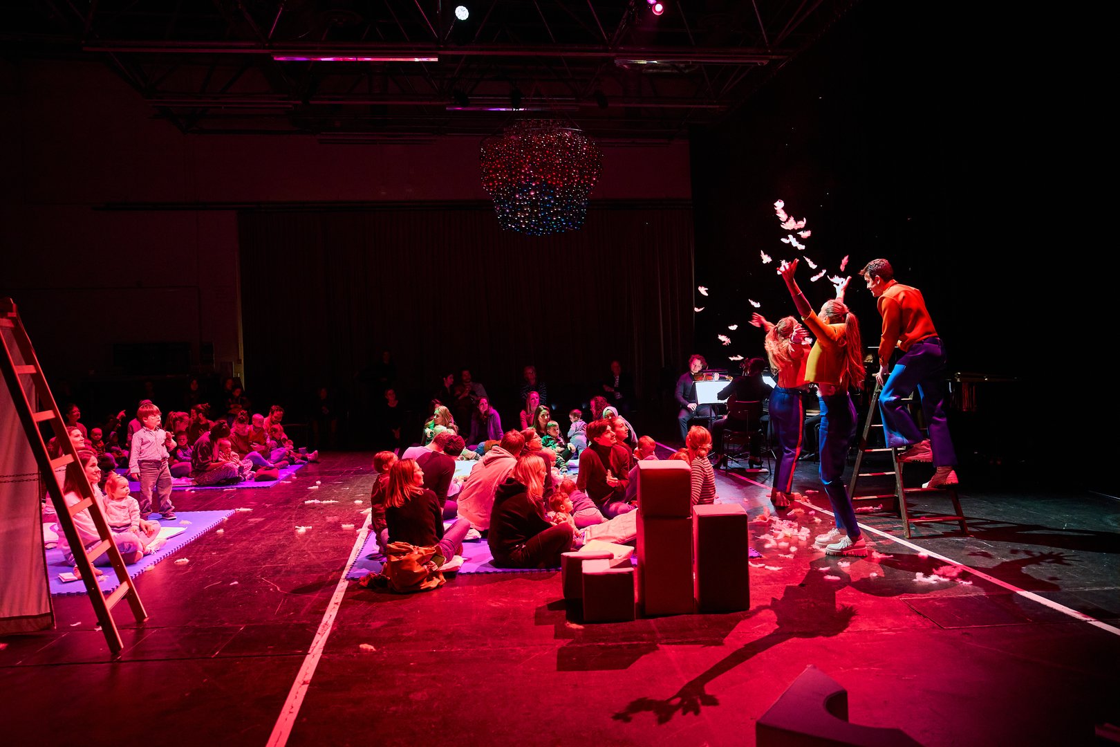 In unserer 30-minütigen Oper „Alles, was fliegt“ schweben Klänge durch die Luft und Bauklötze werden bis zu den Wolken gestapelt. Ob sie vielleicht umfallen können? Mal ausprobieren!