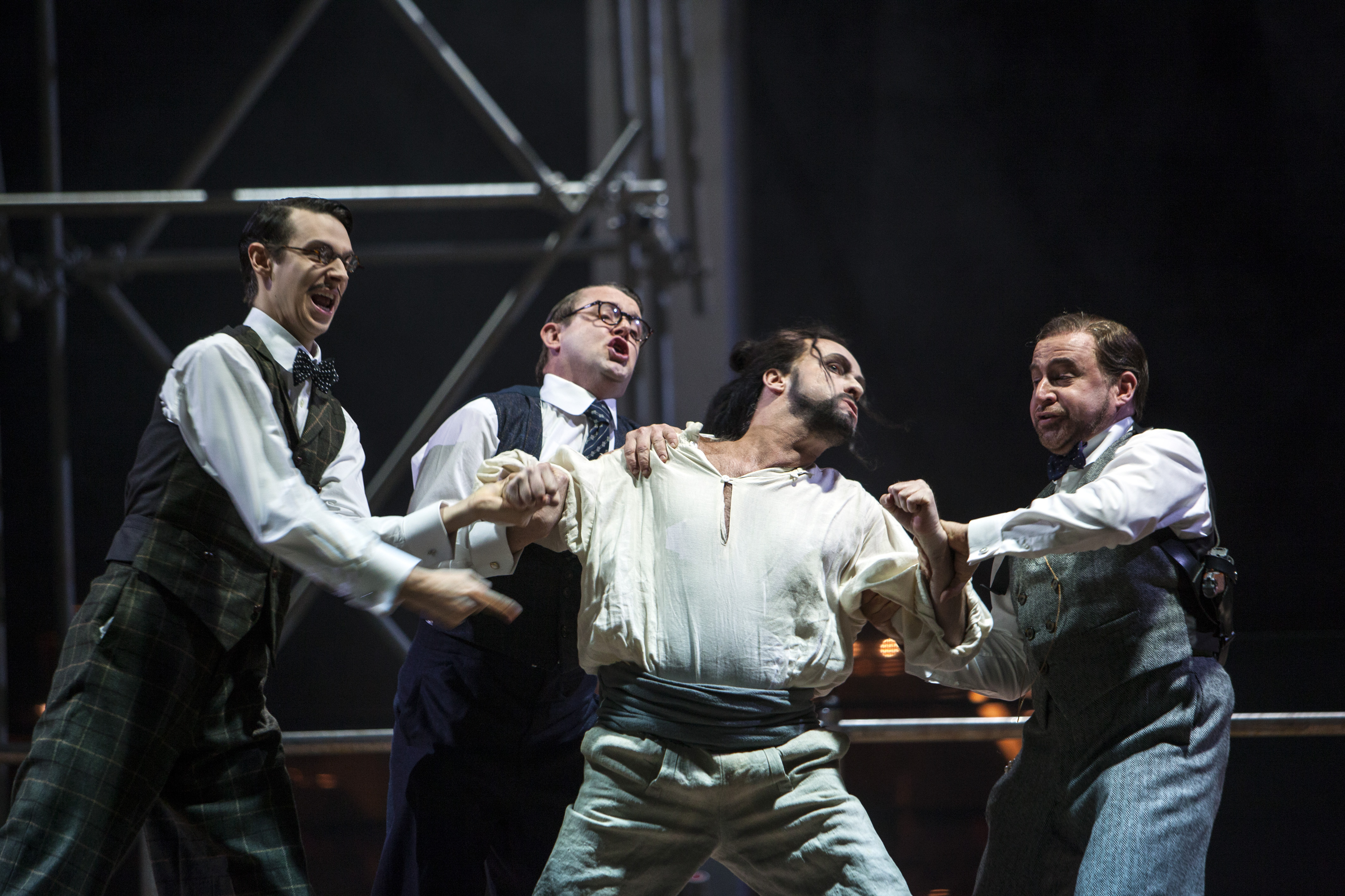 Musikalische Leitung Felix Bender / Arne Willimczik // Inszenierung Lydia Steier // Bühne & Video Momme Hinrichs // Kostüme Ursula Kudrna // Licht Andreas Grüter // Chorleitung Rustam Samedov // Dramaturgie Georg Kehren